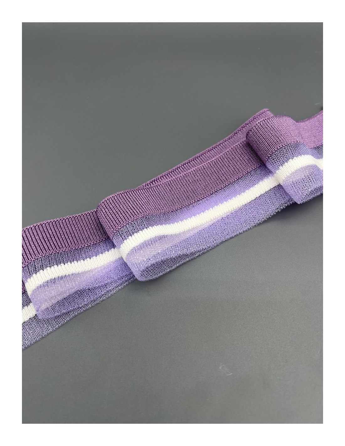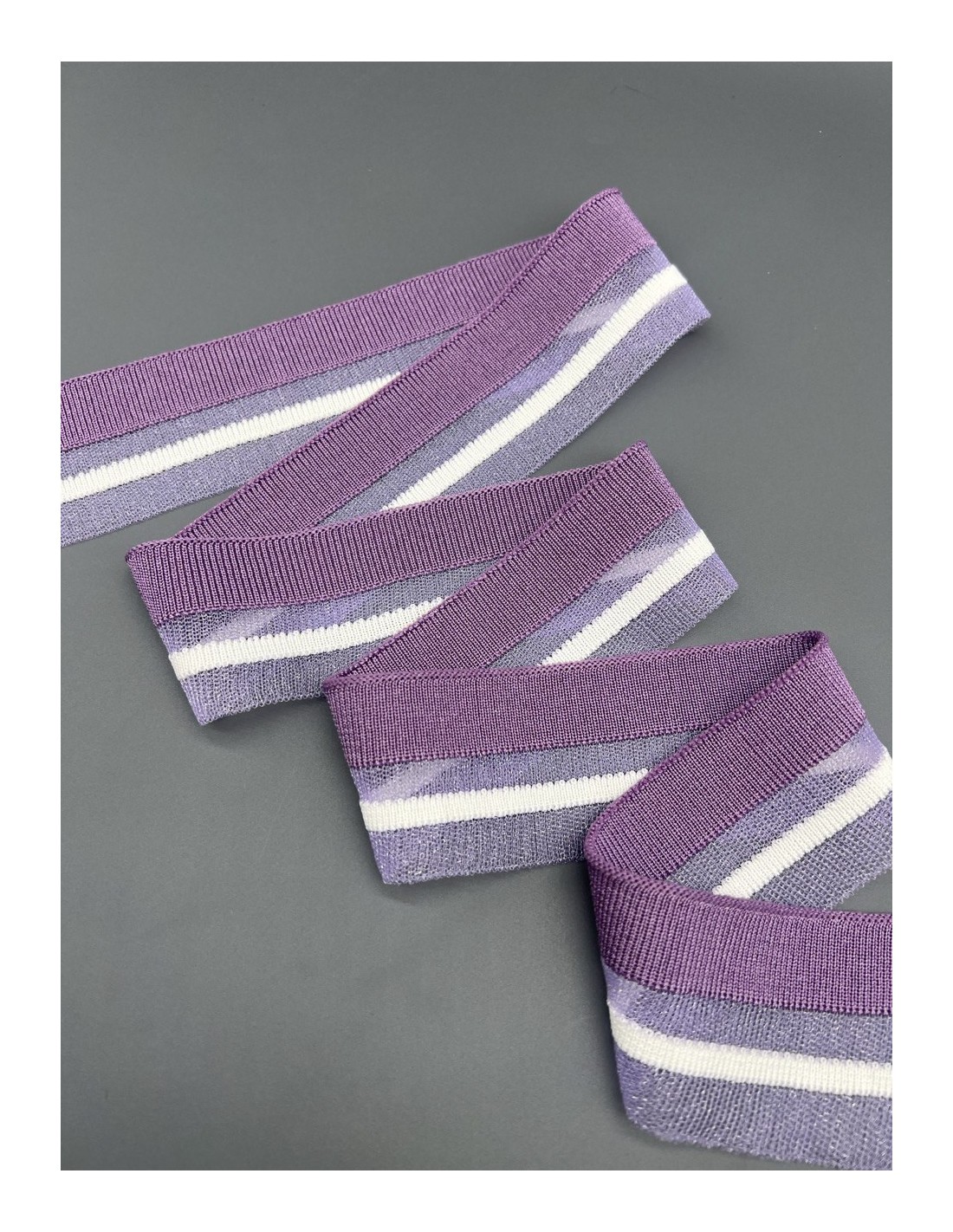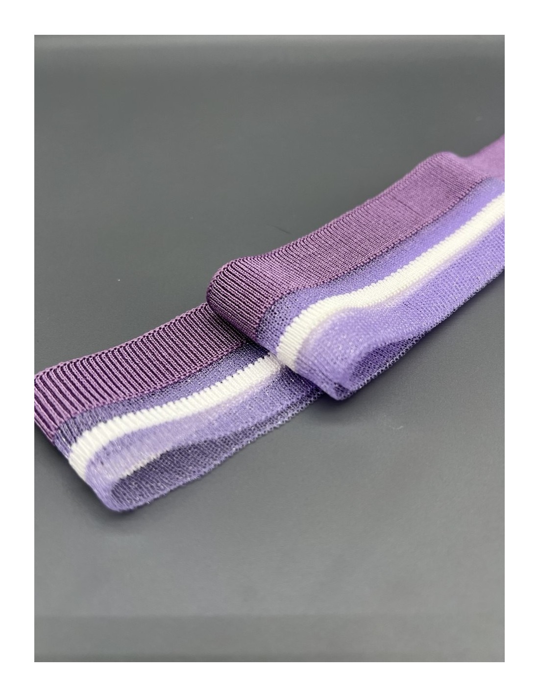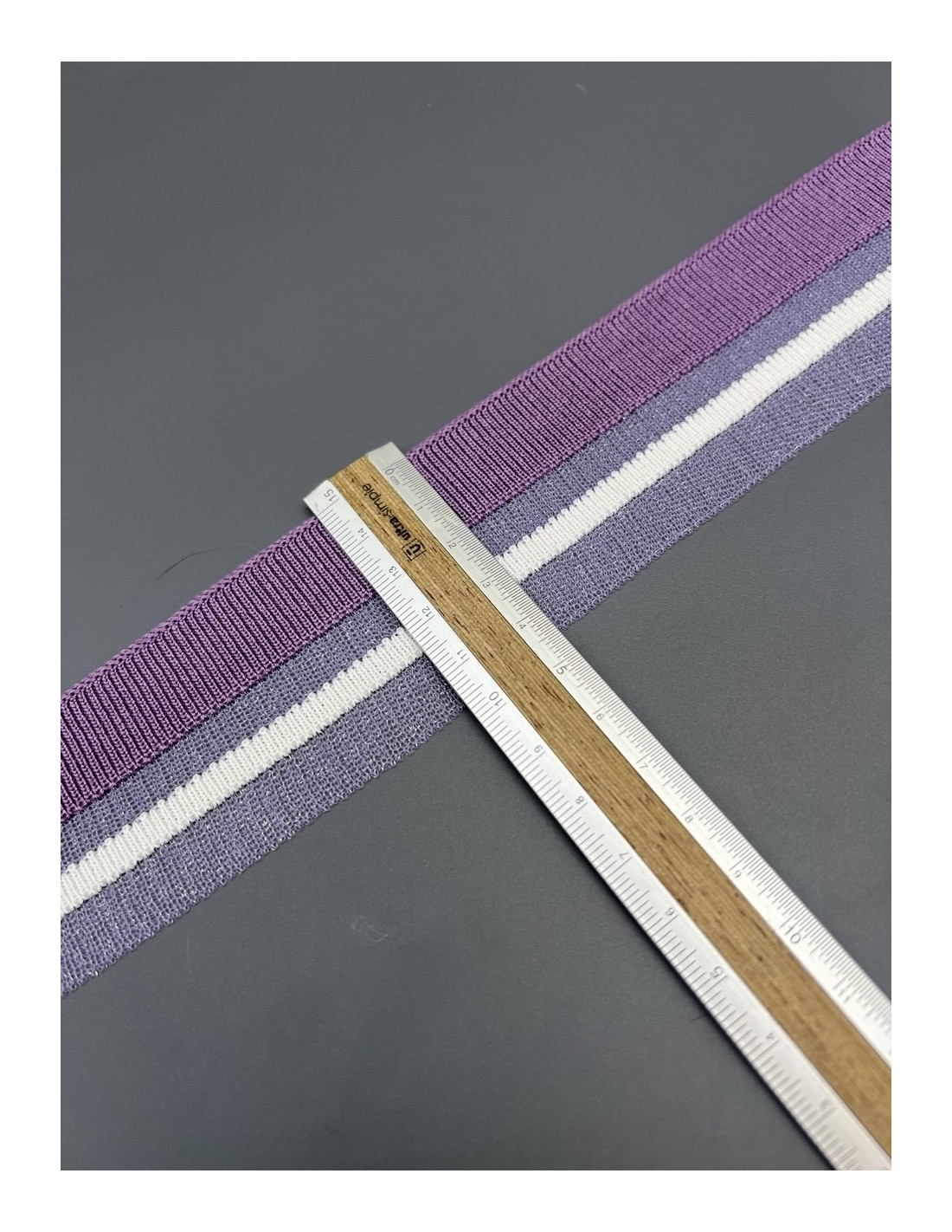 Трикотажная манжета для рукоделия лавандового цвета с белой и прозрачными полосками.