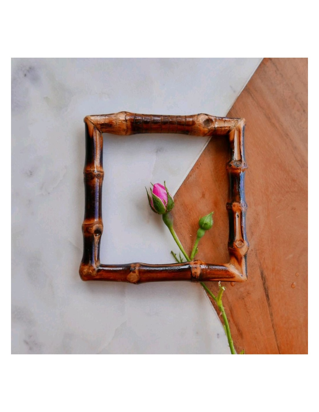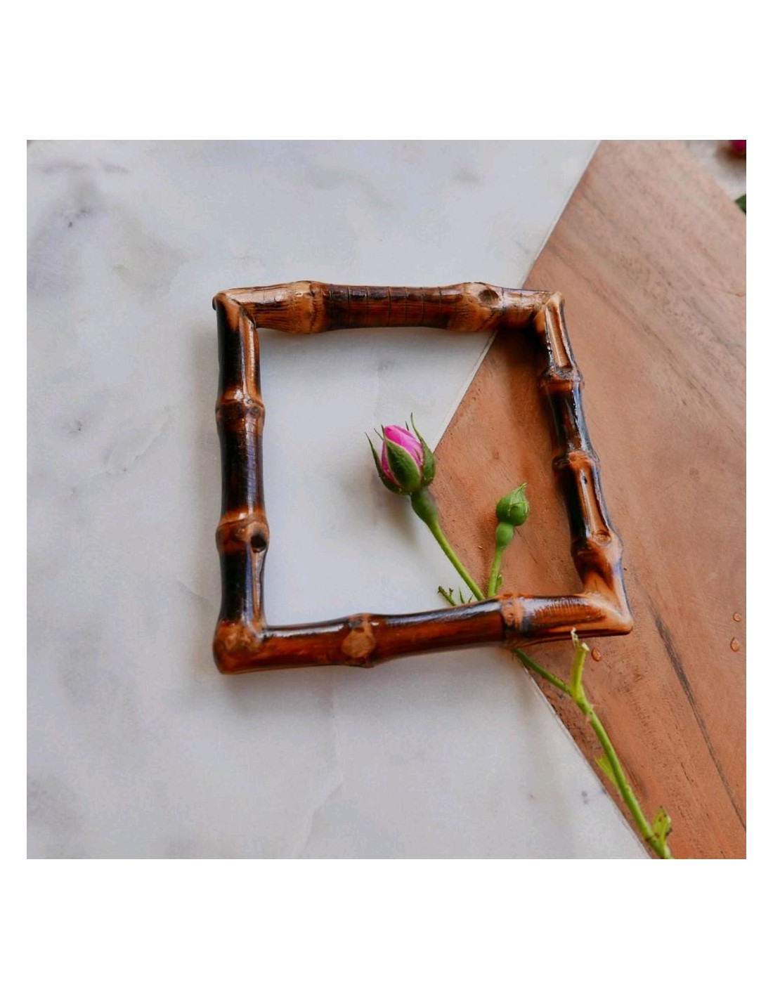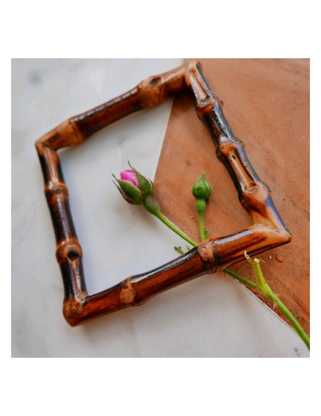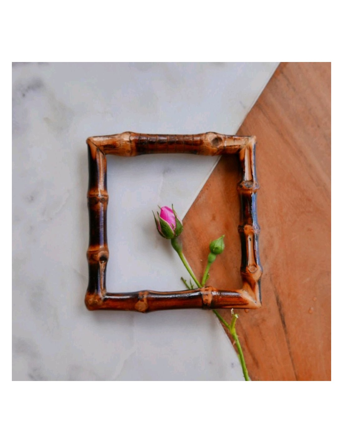 Размер:Высота 9 смШирина 9 смКвадратная рамка из натурального бамбука тёмно-коричневого цвета очень необычный элемент декора, как для одежды,так и для сумок.nnЦена указана за 1 единицу.