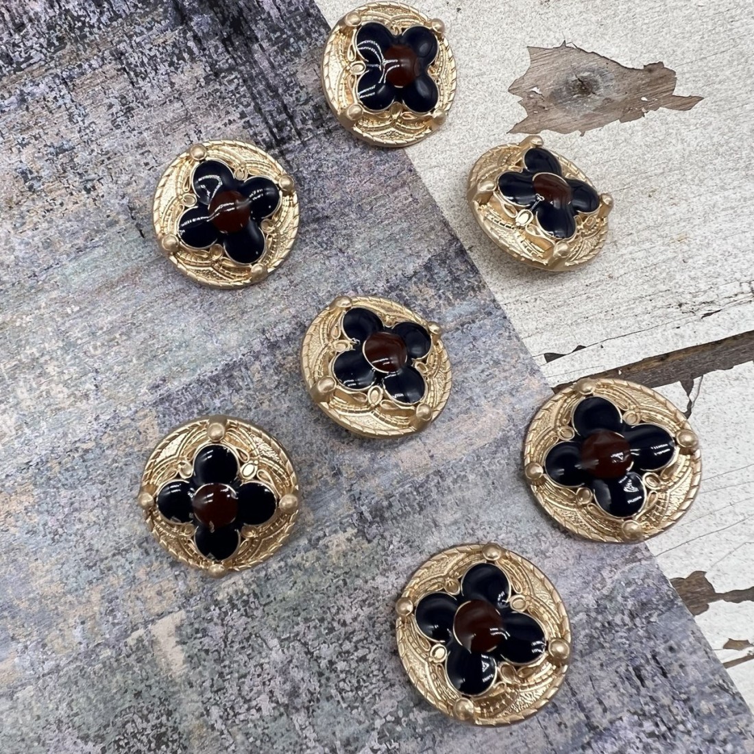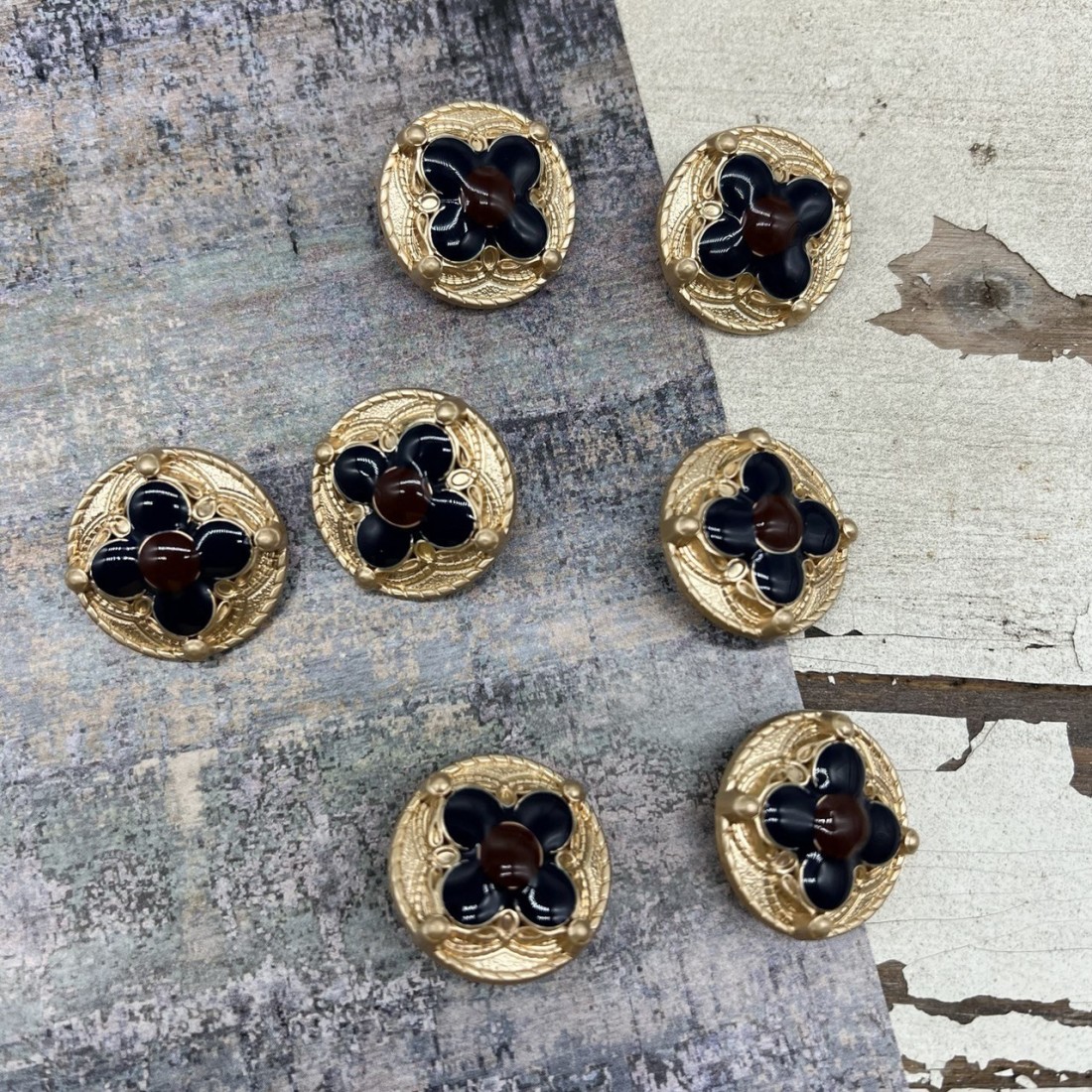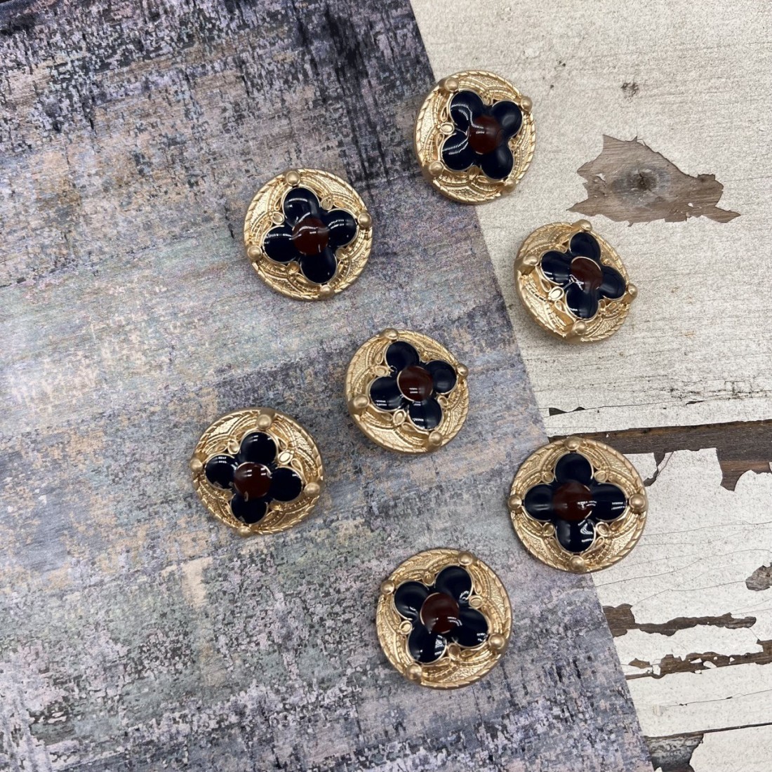 Пуговицы золотистые с цветной эмалью, 25 мм