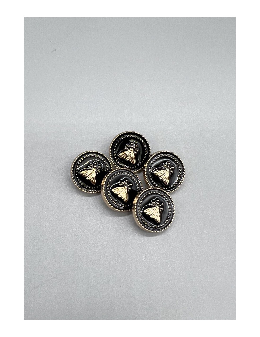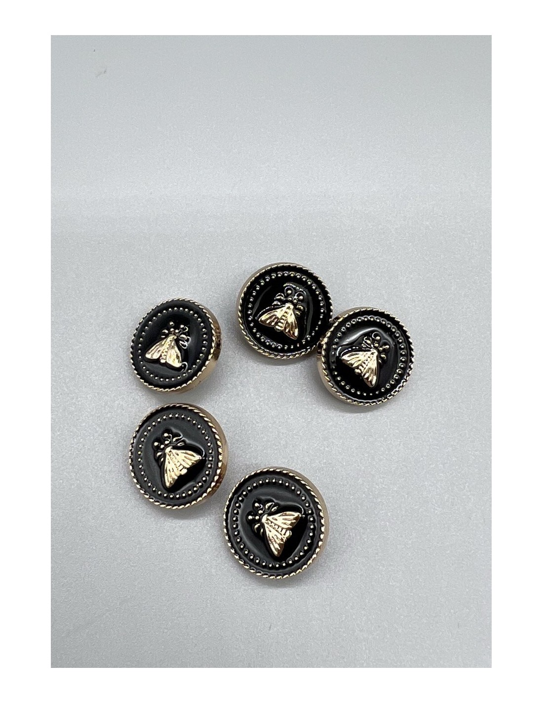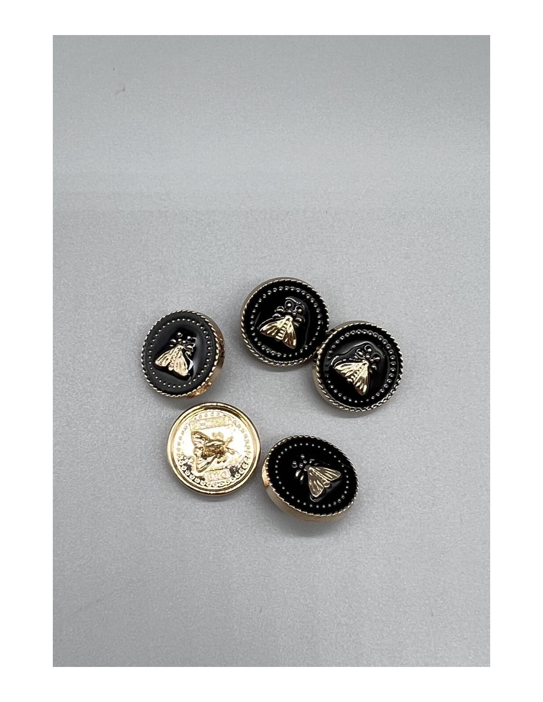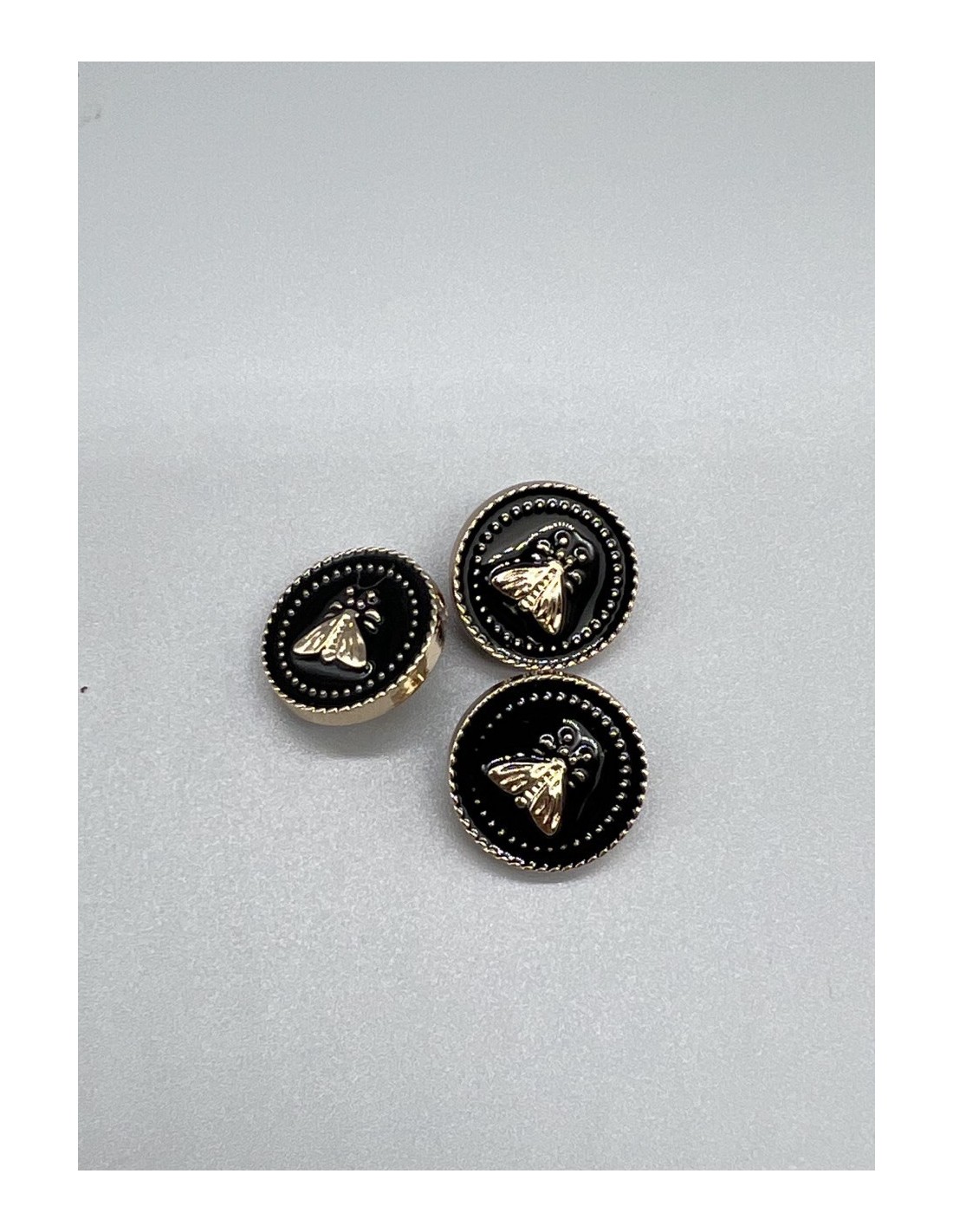 Пуговицы для одежды с мухами , золотистые с черной эмалью, на ножке.