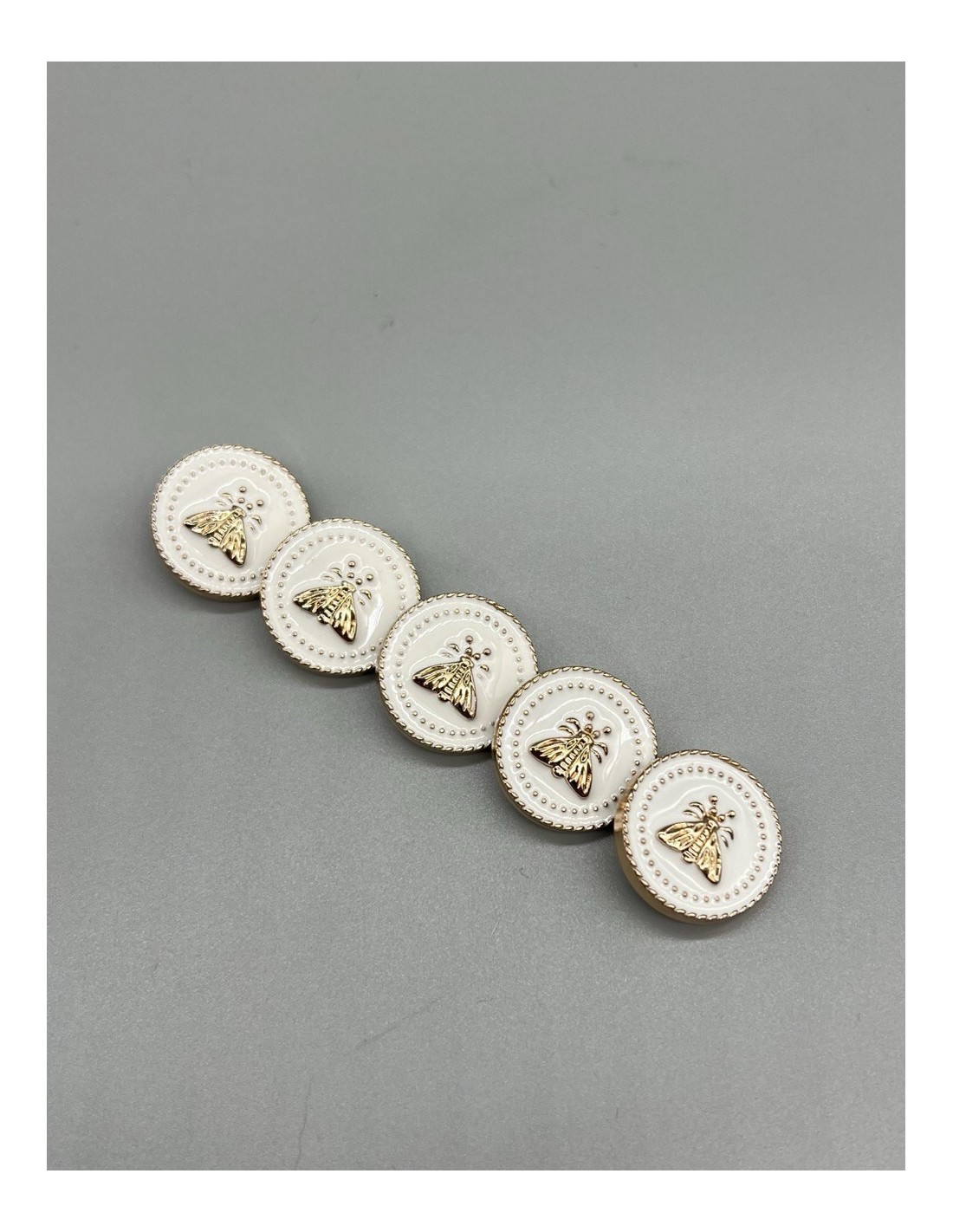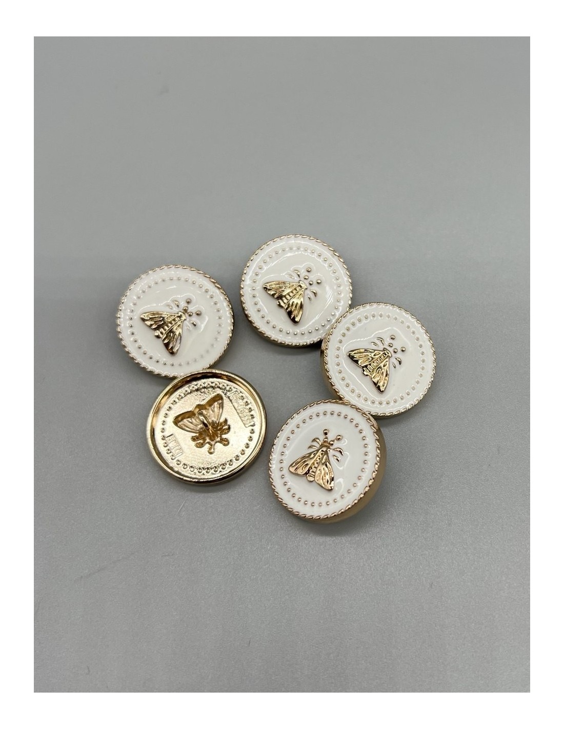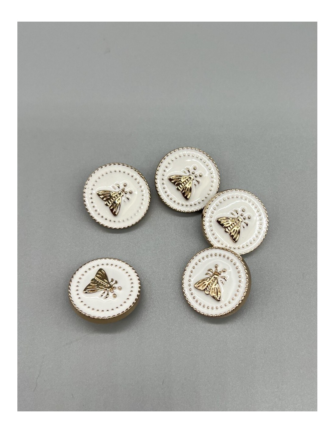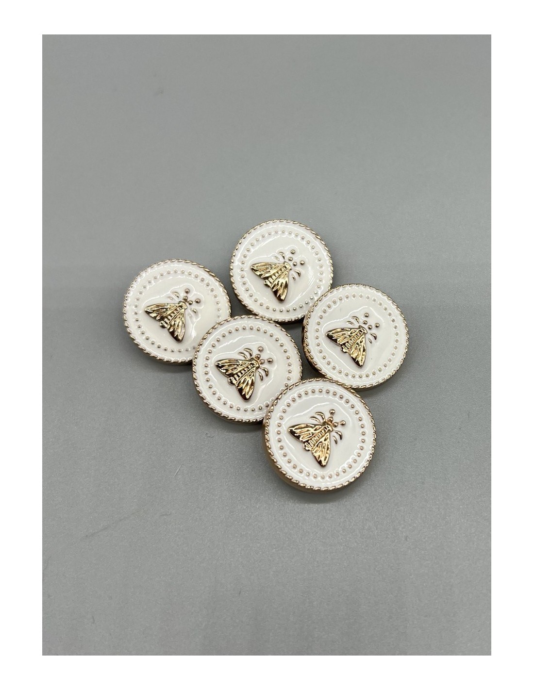 Пуговицы для одежды с мухами , золотистые с молочной эмалью, на ножке.