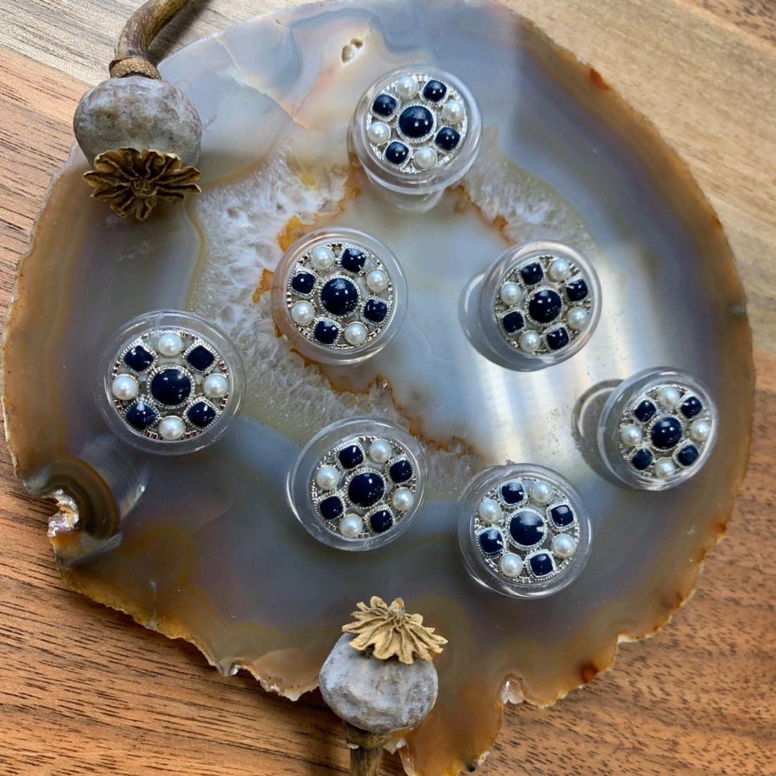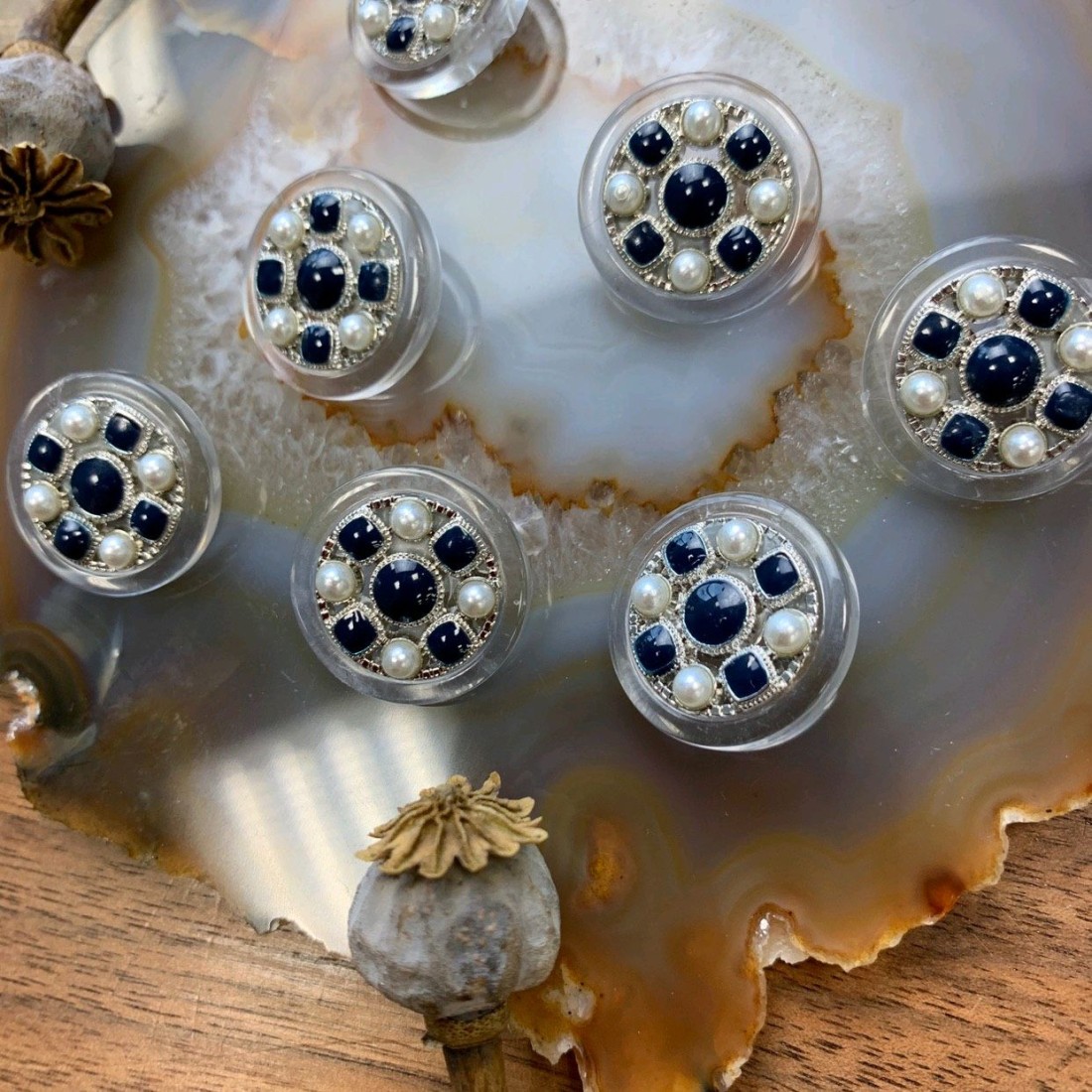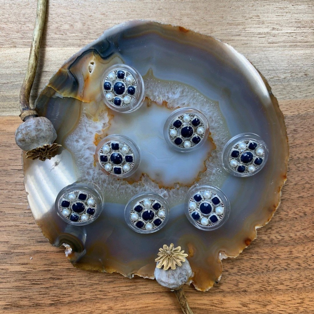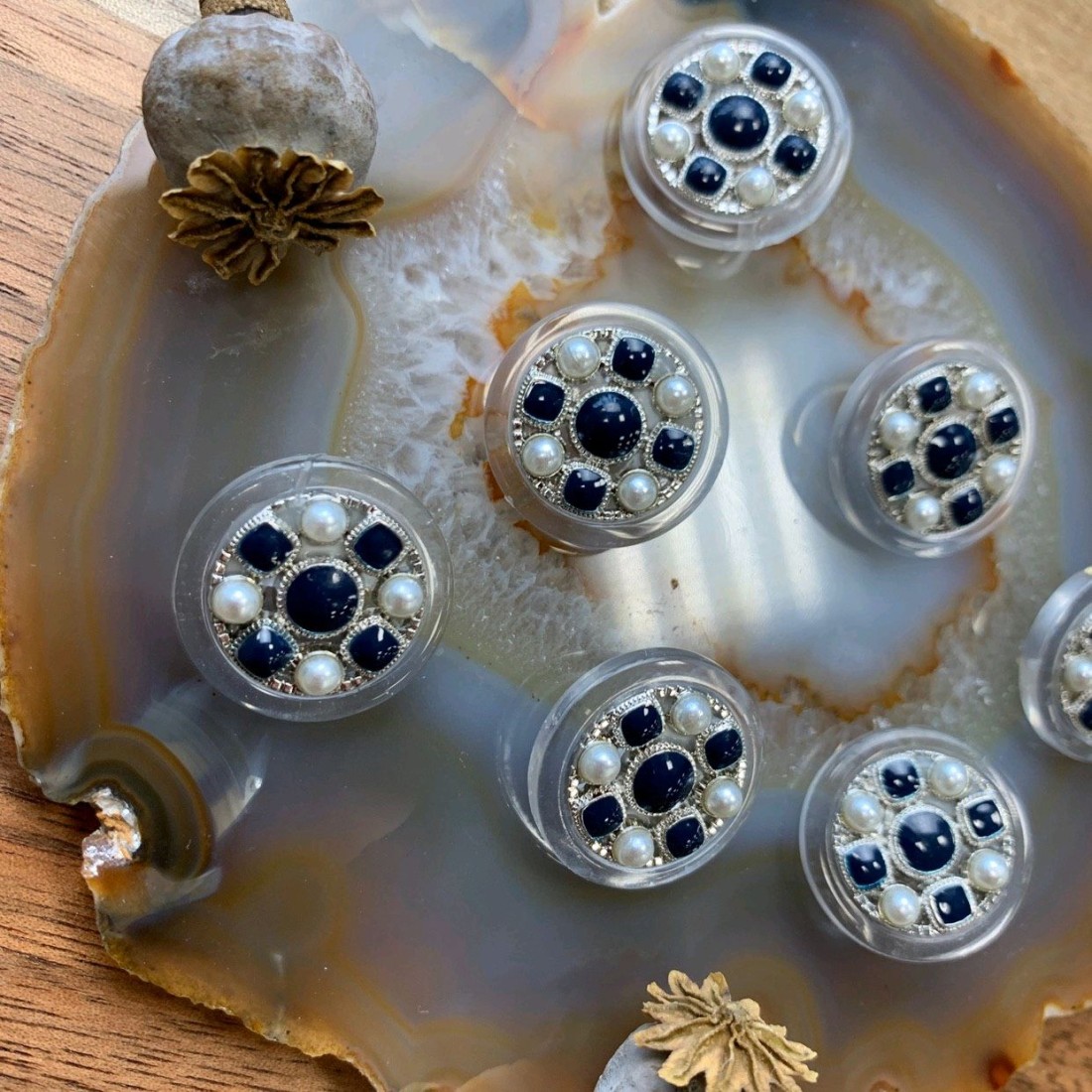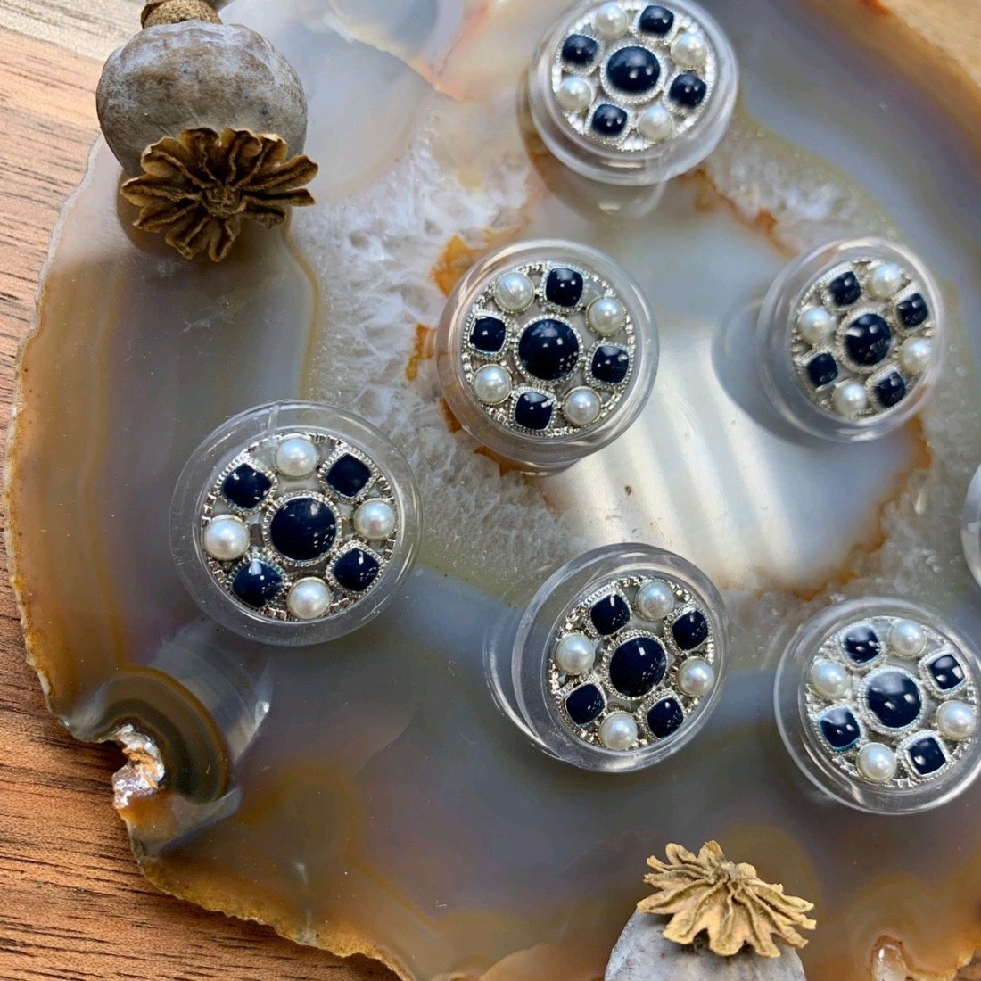 Золотистые пуговицы в форме снежинки с молочными вставками эмали,