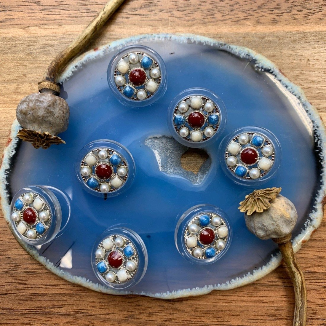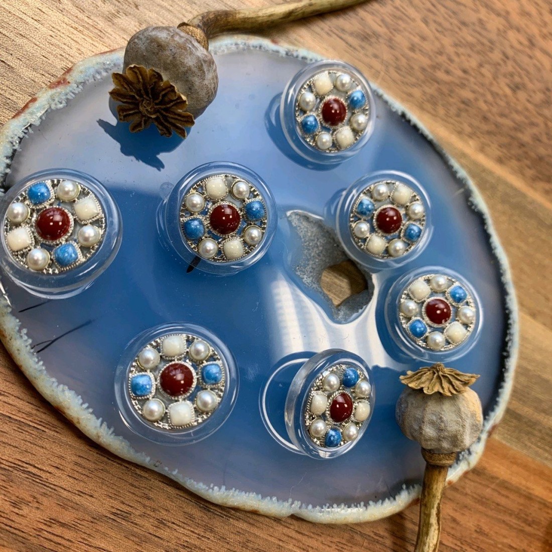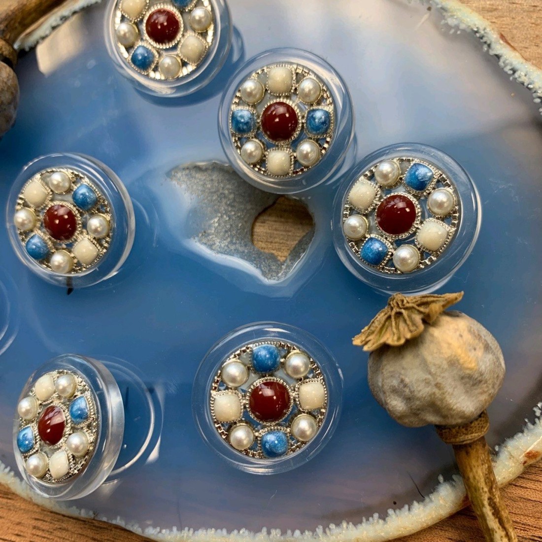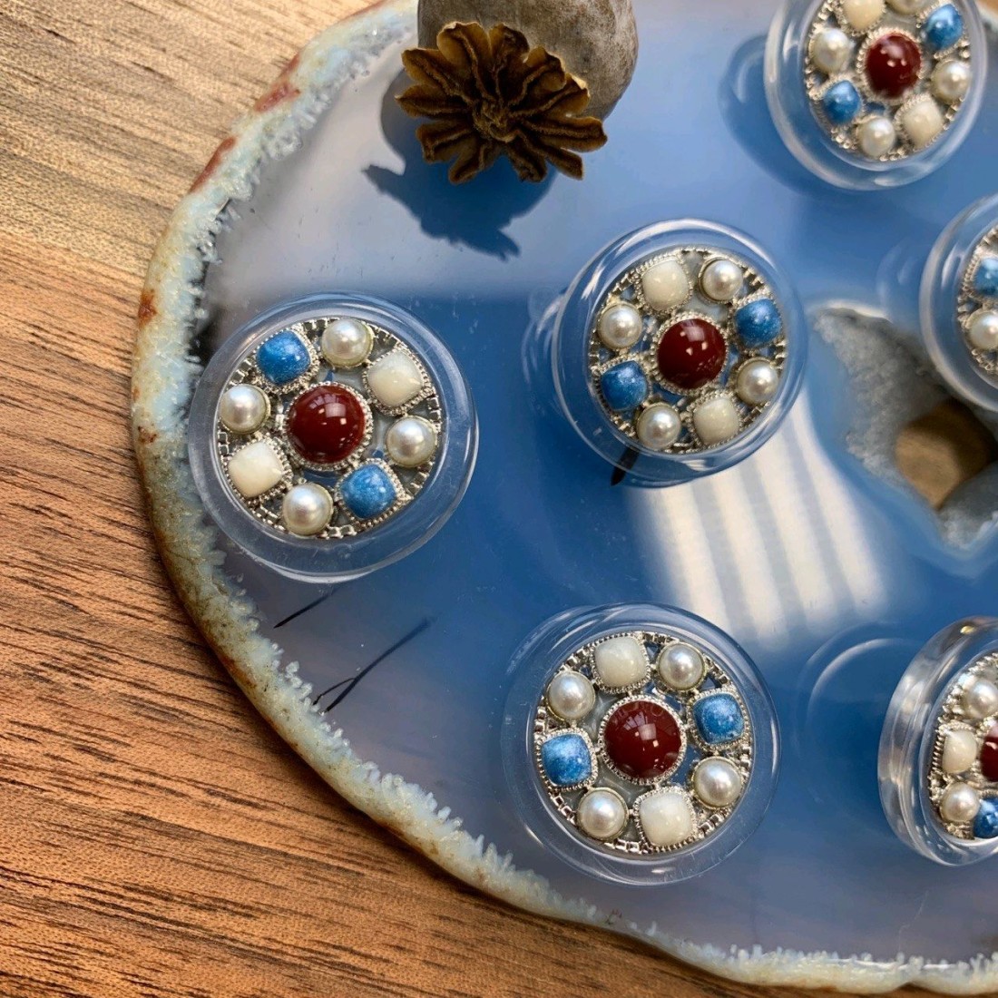 Размер:Диаметр 20ммСтильные прозрачные пуговицы с голубыми и бордовыми вставками и серебристым металлом.Очень красивые,станут уникальным дополнением любого наряда.nnЦена указана за 1 единицу.