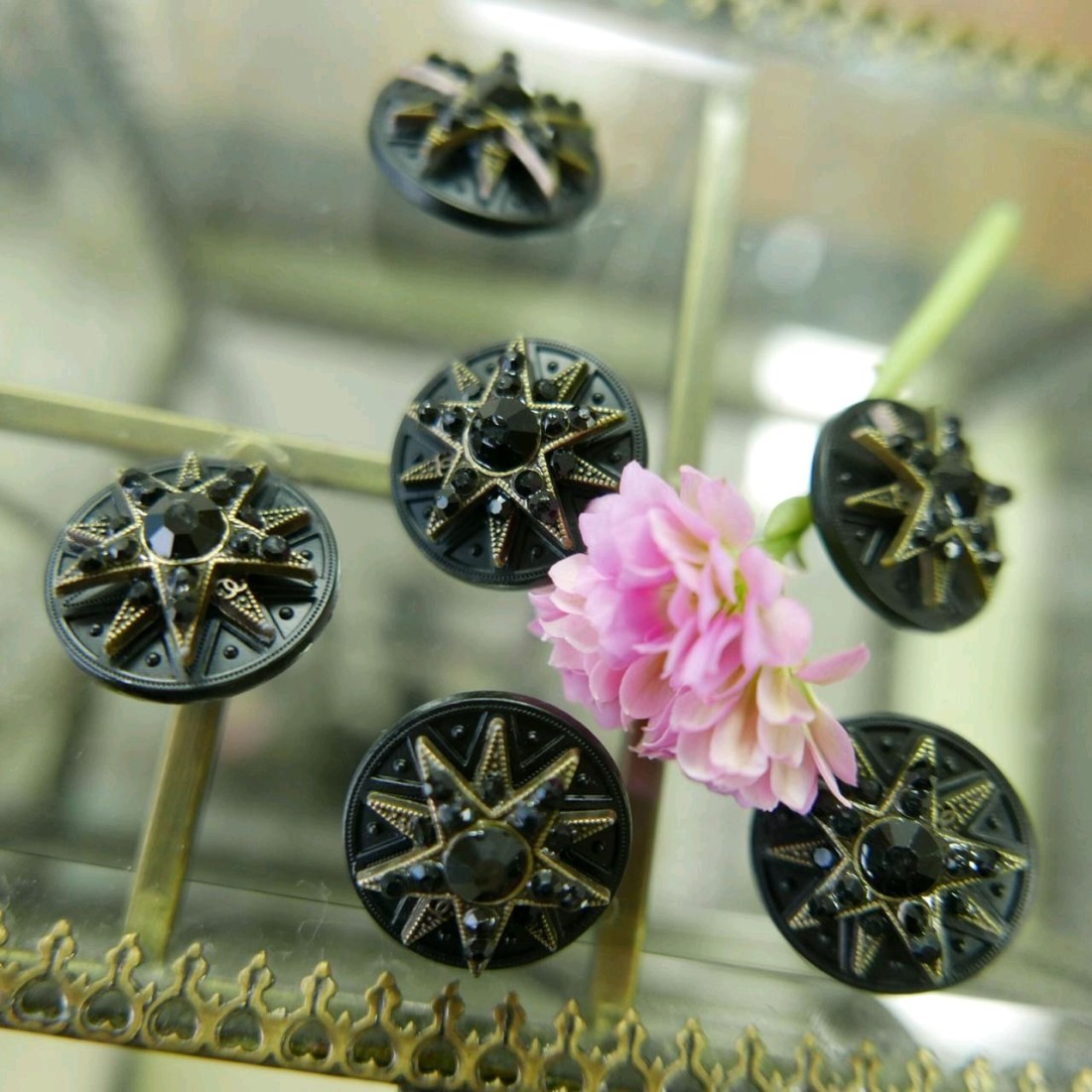 Шикарные пуговицы чёрные с металлическими бронзовыми звёздами,усыпанные чёрными стразами