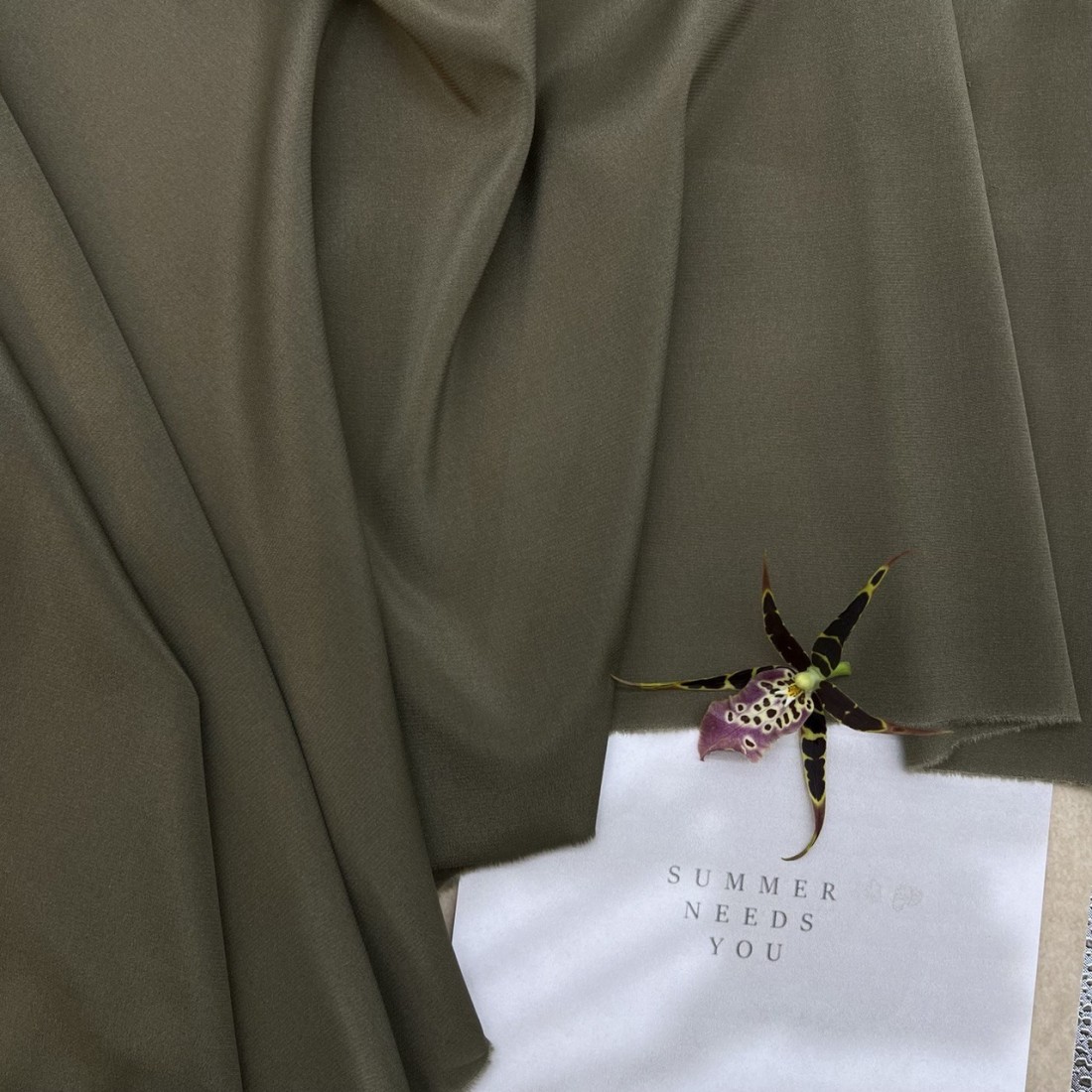 Ткань 100% шёлк. Однотонное полотно цвета хаки,