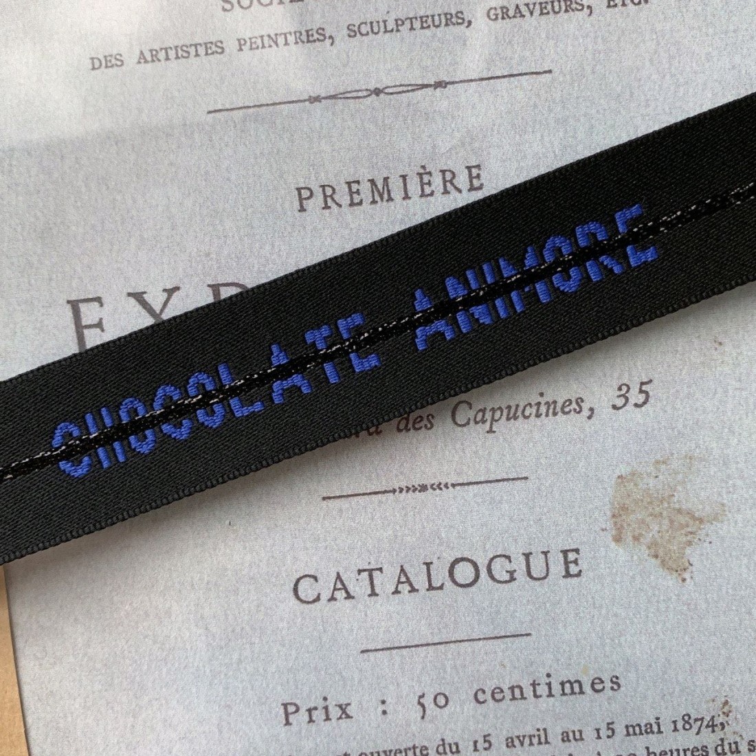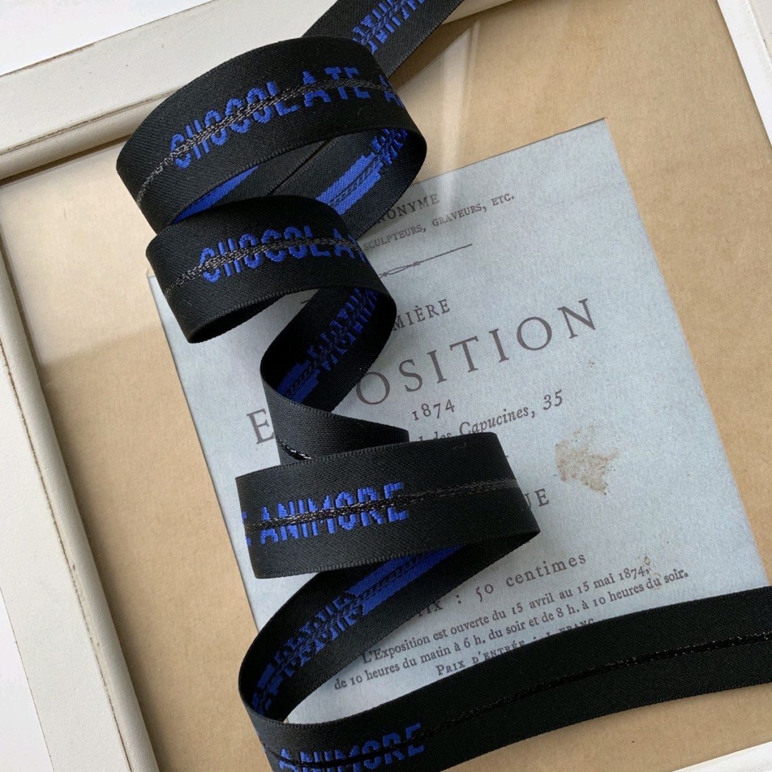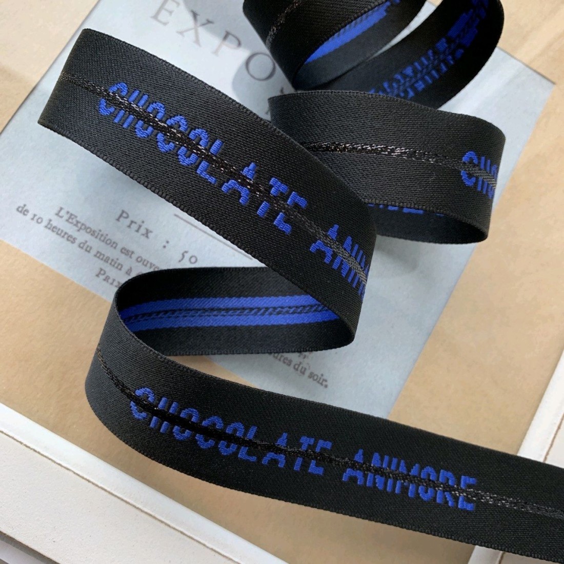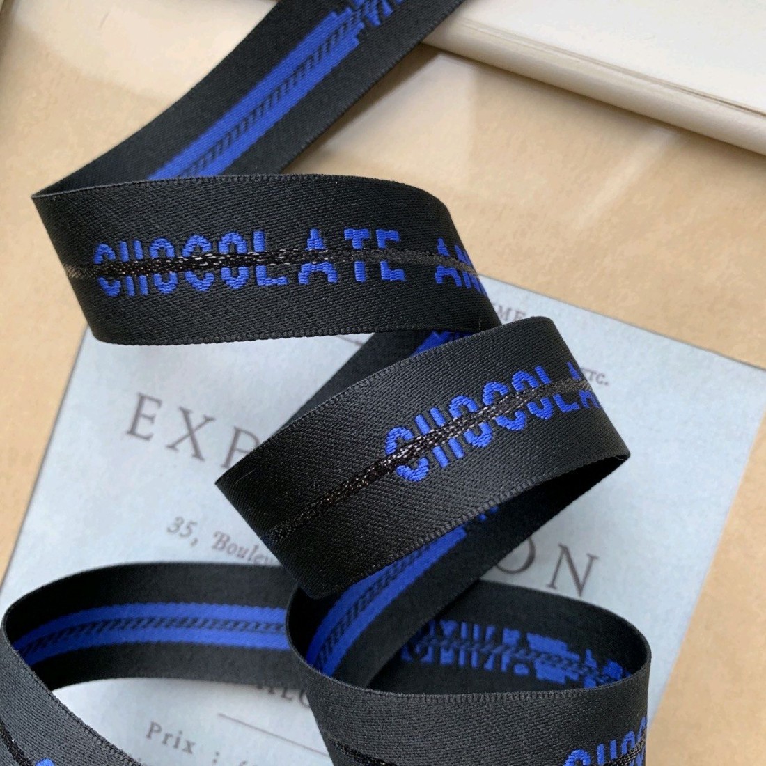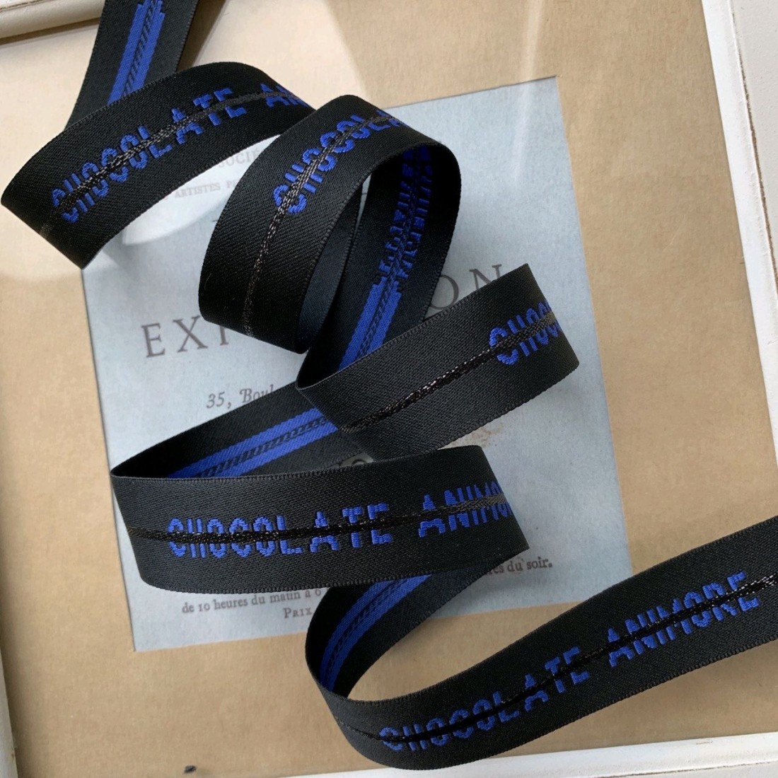 Размер:Ширина 2,5 смКрасивая,пластичная репсовая лента чёрного цвета с надписью ярко-синего цвета chocolate anymore для декорирования одежды. Украшайте свой образ деталями и вы всегда будете в тренде. TD007