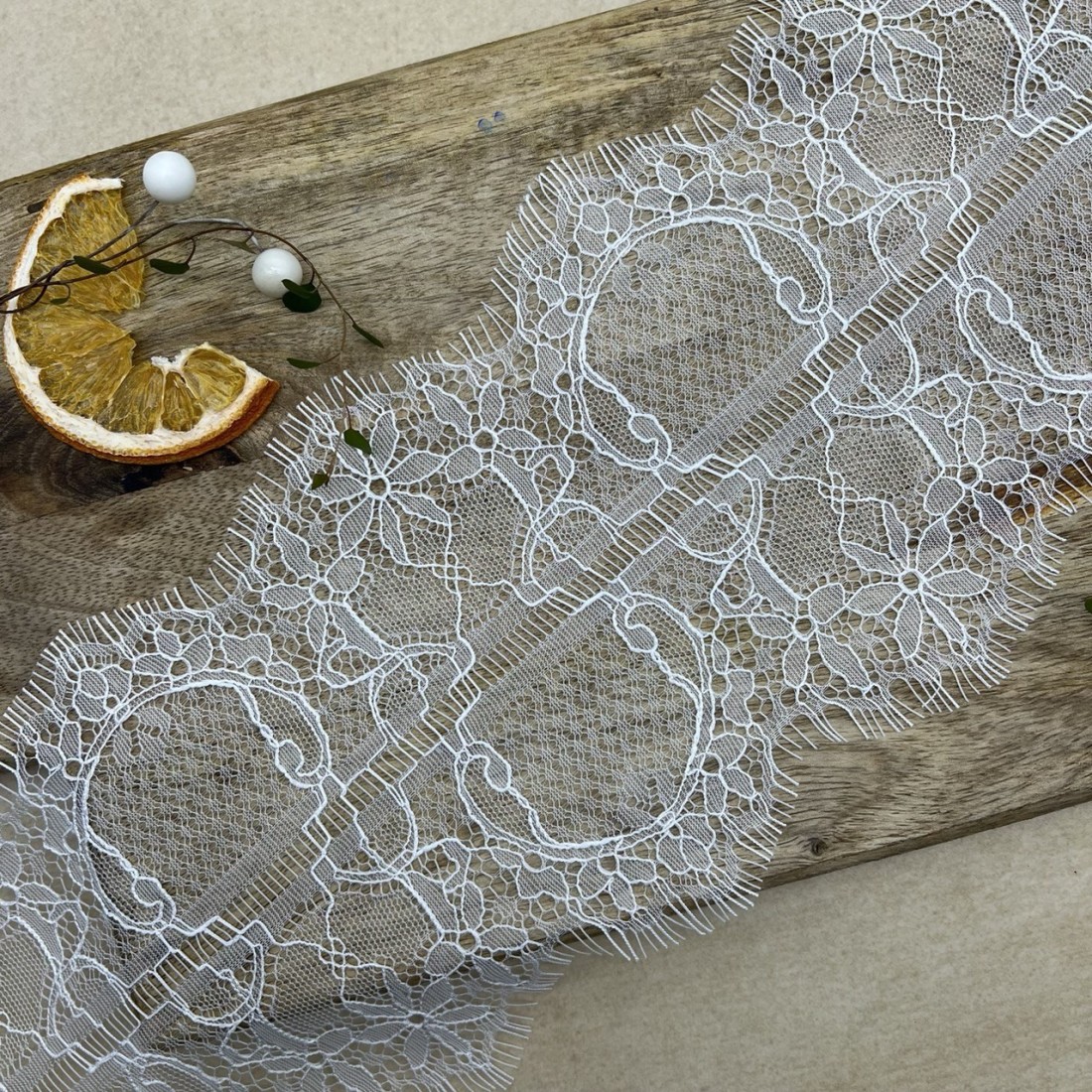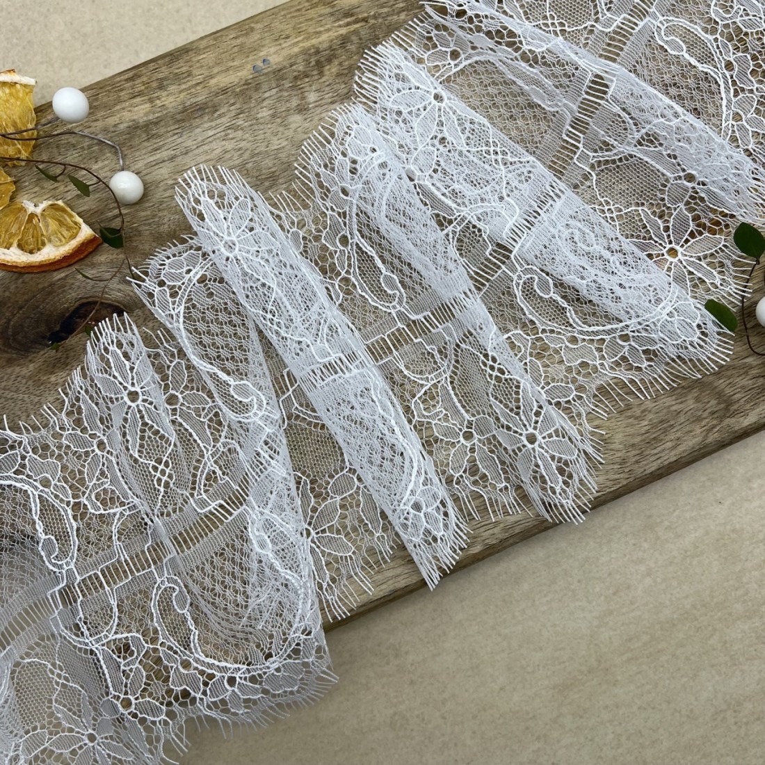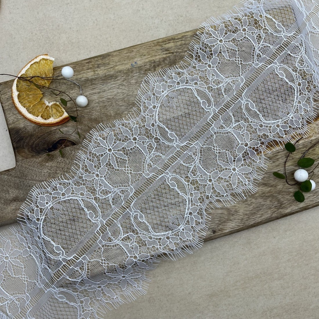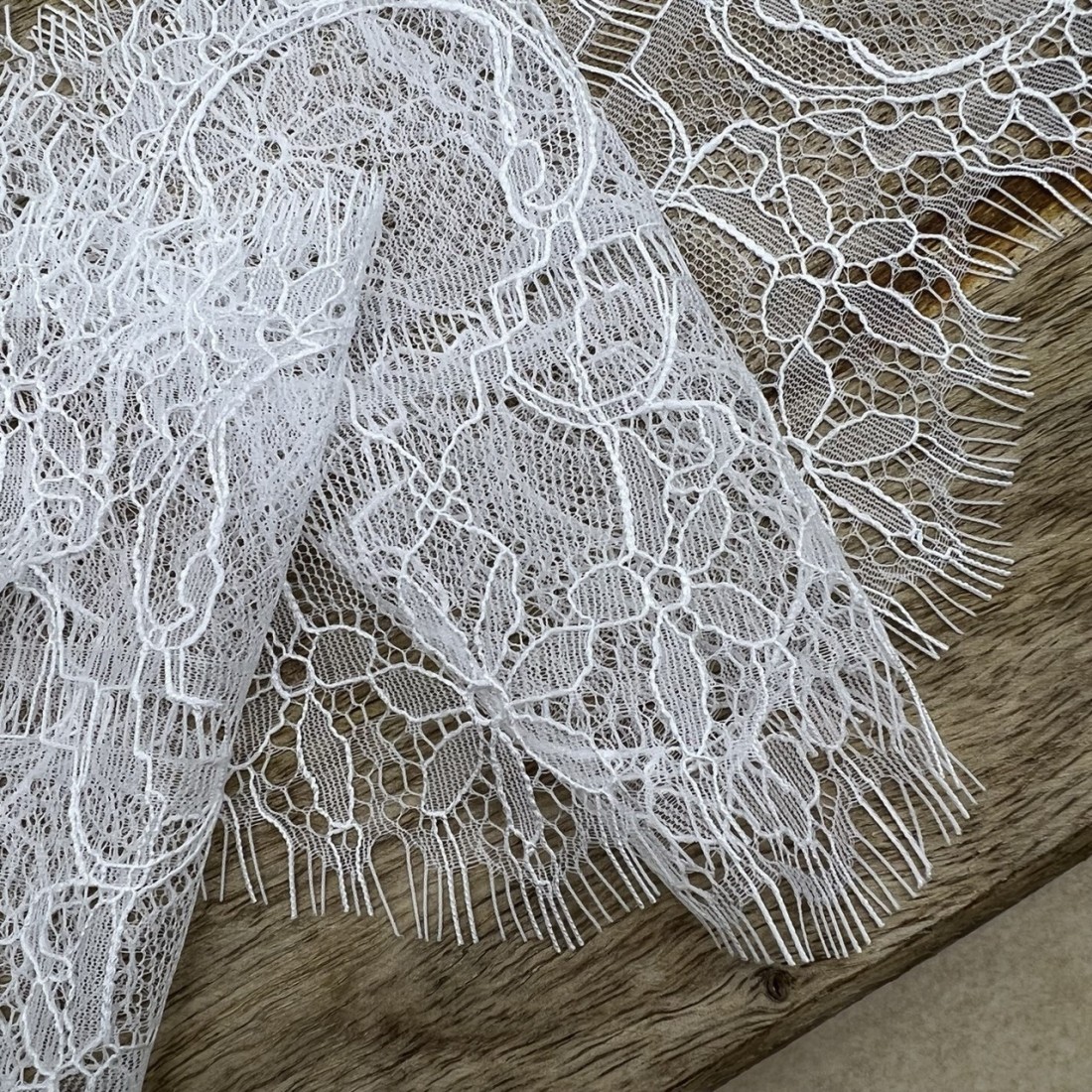 Кружево молочного цвета для декорирования одежды или белья, мягкое, двойное. Отрез можно разрезать пополам вдоль.
