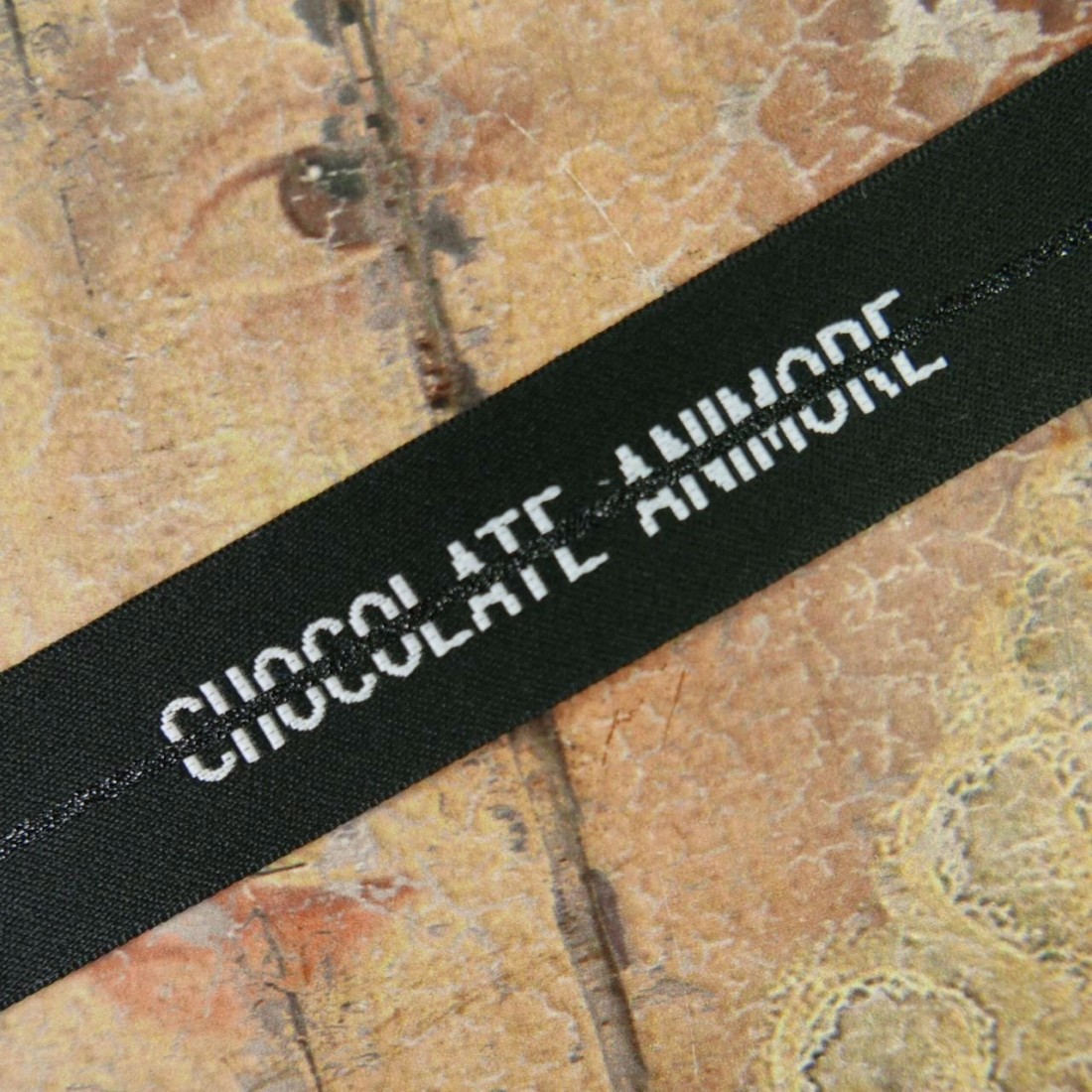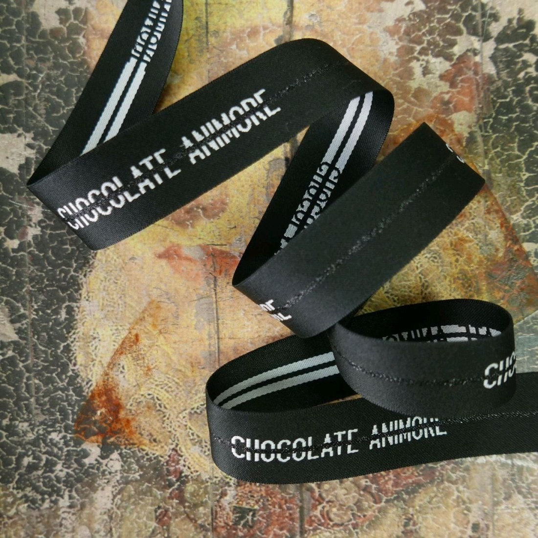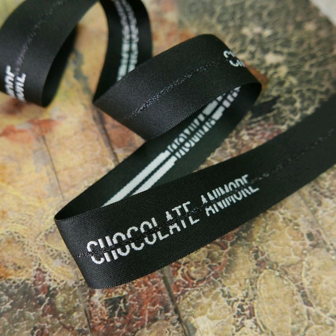 Плотная репсовая лента с блестящей полоской и белым шрифтом
