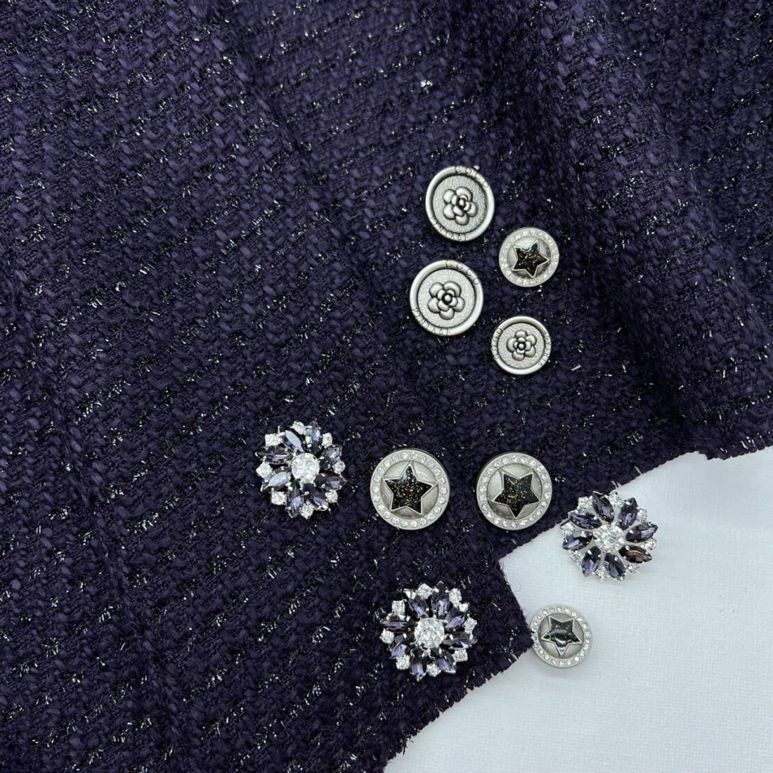 Фиолетовый цвет с блестящей нитью в тон.